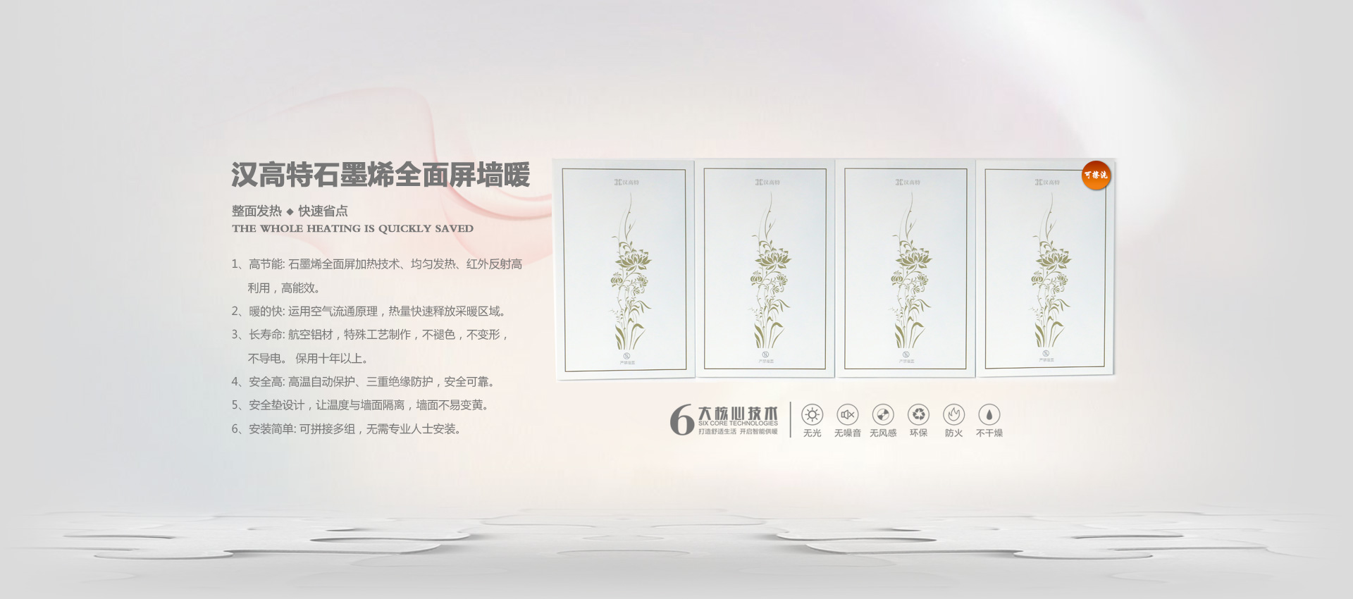 漢高特自主研發(fā)的新型石墨烯電地暖、石墨烯電采暖、電熱膜電地暖、碳纖維電暖、碳晶墻暖畫、電地暖廠家加盟、電熱膜工廠,采用新設(shè)計、新材料在行業(yè)內(nèi)首創(chuàng)了耐強酸、耐強堿、防火阻燃、防水防潮等特點。產(chǎn)品暢銷江蘇、四川、甘肅、山西、河北、河南、內(nèi)蒙、新疆等地。